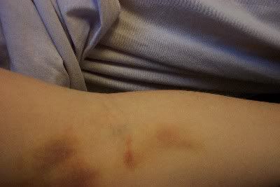 Dark Side of the Rainbow. Minus those two, we hung out in the park for a while, I fell down and hurt my knee rather badly before we met Chris at Coco and hung out there for a while. For lack of anything better to do, we went to Hustler Hollywood and looked at things for a long while. Andrew called and was adorable and silly. Back to Coco, sat on the sidewalk forever making plans, then to Waffle House at 2am, where Bryan came to hang out with us for a while. Walgreen's for cheap cigars, then to my house to smoke said cigars, and sit in the drive way and talk. Chris taught us things about drugs. It was funny. Everyone headed home around 4:30ish.